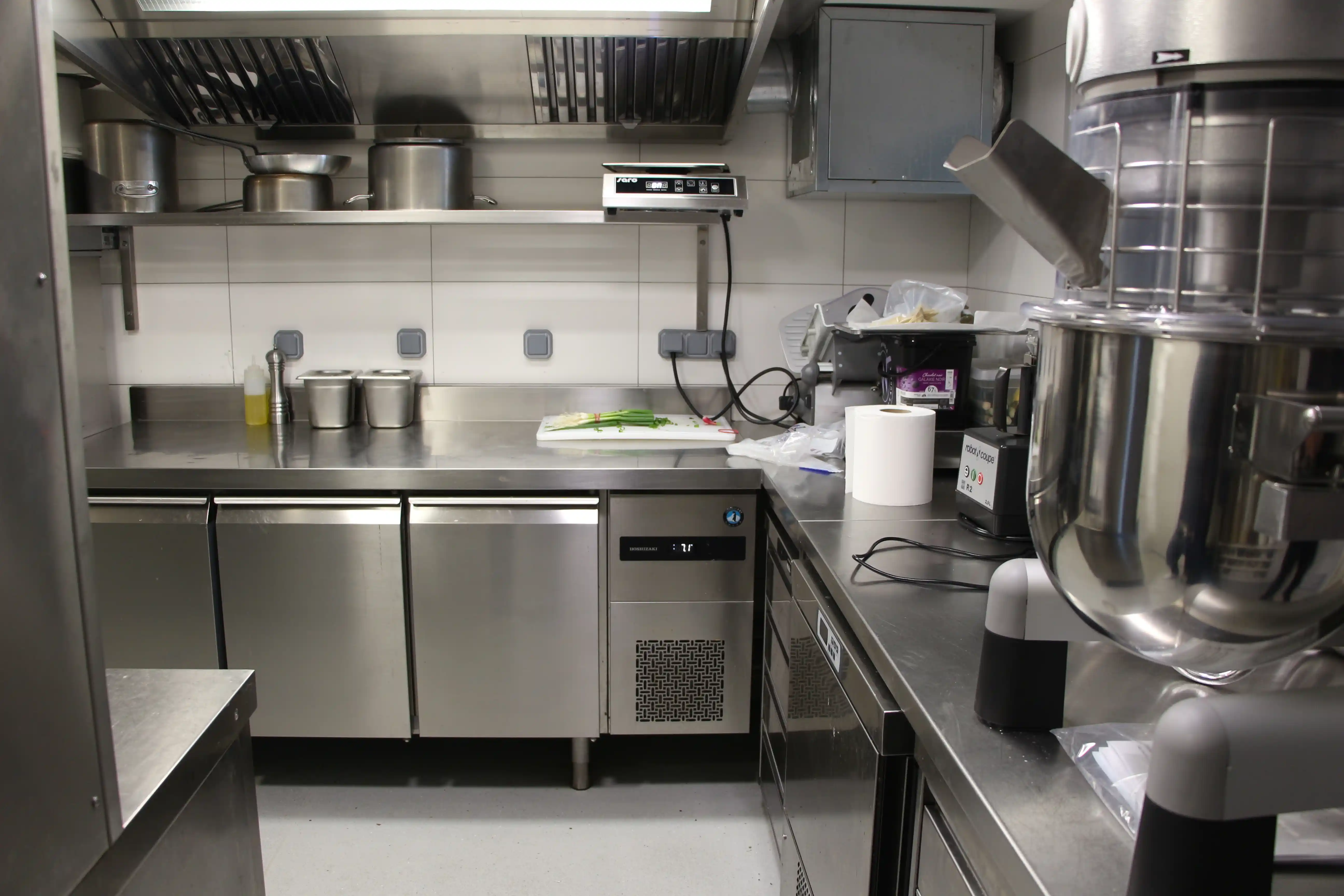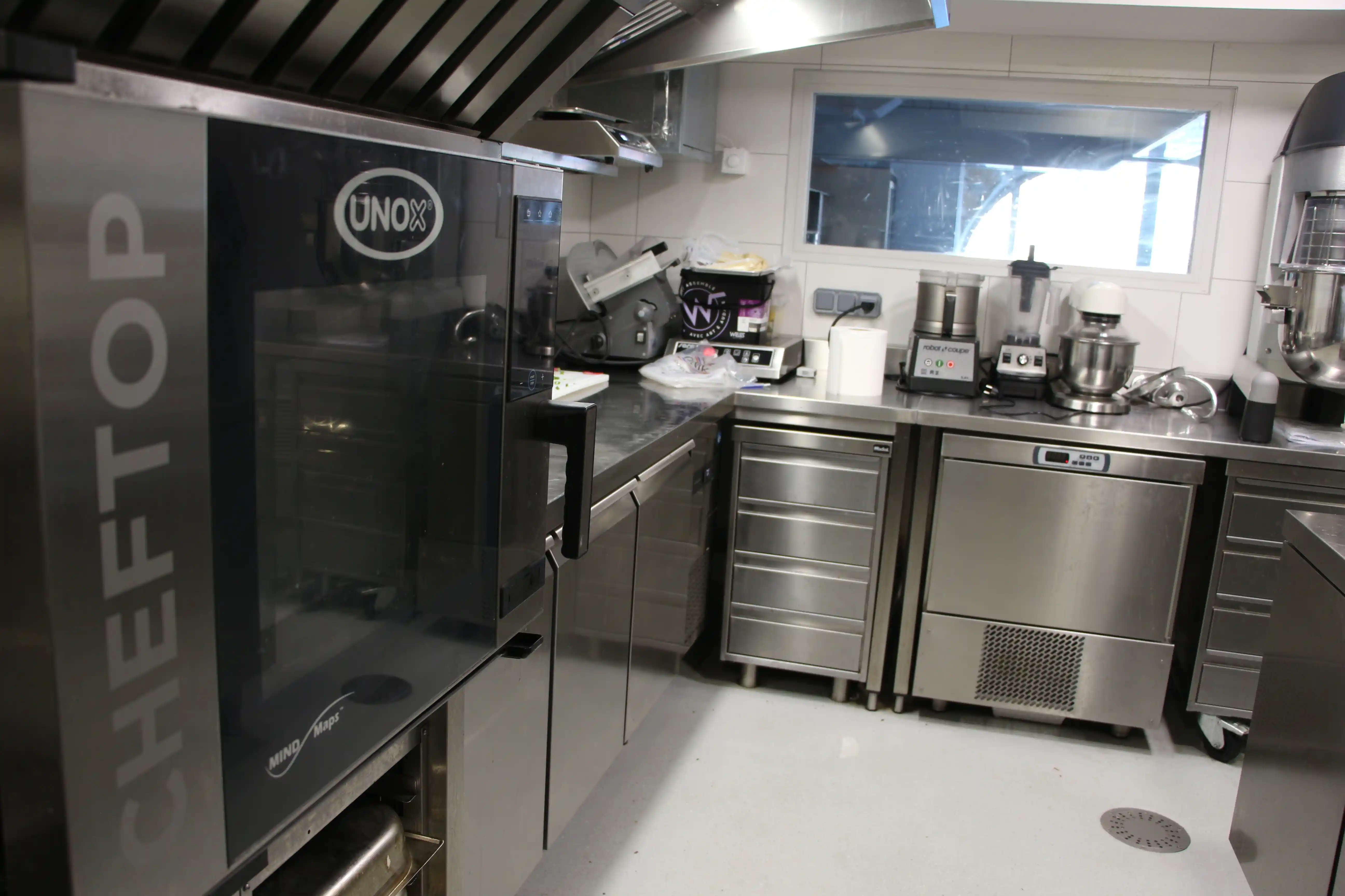 Les travaux ont porté sur plusieurs zones distinctes : préparation, cuisson, froid, magasin et pâtisserie, avec un mobilier inox sur mesure et des équipements haut de gamme.